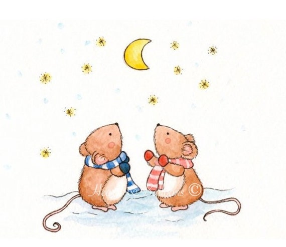 Items similar to Sweet watercolour Mouse art print 5 x 7 Mice Dreaming